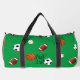 Bolsa de duffle de temática mixta Deportes con balones de fútbol, pelotas de basquet y pelotas de fútbol con área de texto para tu nombre de equipo. El color de la parte superior y de los lados se puede cambiar en el símbolo del sistema de edición. Diseñado para usted por HAMbyWhiteGlove aka HAMbyWG Mostrado con verde.