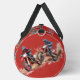 Carrera de bicicletas sucias, bolsa de dufas rojas para los chicos. Las bicicletas de varios tamaños arrojan suciedad mientras los conductores compiten por la línea de meta. Las bicicletas y los ciclistas llevan colores rojo, gris y azul. Perfecto para llevar ropa de gimnasio, equipo deportivo o ropa para dormir. Lea más sobre el producto en la descripción del producto. El duffle se presenta en dos tamaños con un tamaño mayor.