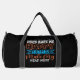 This humorous black duffle bag features the bold statement "DOGS MAKE ME HAPPY HUMANS Make My HEAD HURT." The vibrant orange and blue distressed text adds a playful touch. Perfect for dog lovers who prefer the company of canines to humans, this bag is a fun way to express your true feelings. Edit color of the bag caps and body in the Design tool to your favored colors.