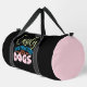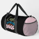 This fun black duffle bag features the playful and relatable phrase "Easily DISTRACTED BY DOGS." The vibrant yellow, blue, and pink distressed text adds a lively touch. Perfect for dog lovers who often find their attention drawn to furry friends! Edit color of the bag caps and body in the Design tool to your favored colors.
