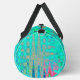 Estas bolsas Guay coloridas de gran tamaño para el Duffle cuentan con un Groovy Resumen de colores retro turquesa azul y arcoiris con olas atómicas y pintura con acentos Aquamarinos, Rojos, Amarillos y Lime Green. El resultado es un diseño colorido, ruidoso y abstracto que te encantará.