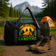 This black duffle bag is perfect for any outdoor enthusiast who finds solace in nature, featuring a vibrant design of a tent and pine trees under a sunset, with the relatable phrase "I DON'T NEED THERAPY I JUST NEED CAMPING." It's an ideal companion for camping trips, hiking adventures, or just carrying your gear. Edit color of the bag caps and body in the Design tool to your favored colors.