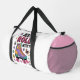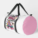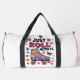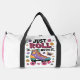 This white and pink duffle bag is perfect for roller skating enthusiasts and anyone embracing a positive attitude, featuring a vibrant roller skate design surrounded by colorful flowers, hearts, and butterflies, and the encouraging phrase "JUST ROLL WITH IT." It's an ideal accessory for carrying skates, gym gear, or for a fun, retro-inspired outing. Edit color of the bag caps and body in the Design tool to your favored colors.
