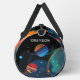 Colorido espacio astronauta moderno nombre personalizado Duffle Bag Sports Bag Gym Bag incluye un astronauta flotando por el espacio exterior con planetas coloridos y nadadores y personalizado con su nombre en tipografía de escritura moderna. Perfecto como regalo para los amantes del espacio, familia y amigos por cumpleaños, Navidades, vacaciones, Día del Padre, hermano, esposo, compañero, mejores amigos, compañeros de trabajo y más. Diseñado por ©2024 Evco Studio www.zazzle.com/store/evcostudio