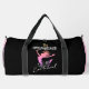 This black duffle bag features a vibrant graphic of a silhouetted figure (possibly a dancer or gymnast) leaping with arms outstretched, radiating energy. Above the figure, "I'M OVERWHELMED" is in large white letters, with "With Excitement" below, conveying a humorous and positive spin on feeling overwhelmed. This design is perfect for highly enthusiastic individuals. Edit color of the bag caps and body in the Design tool to your favored colors.