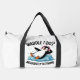 This white duffle bag features a charming cartoon of a relaxed penguin wearing headphones and lying on an ice floe, with the text "WADDLE I DO?" above and "ABSOLUTELY NOTHING." below. This humorous design is perfect for those who love to relax and enjoy their downtime. Edit color of the bag caps and body in the Design tool to your favored colors.