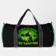 This black duffle bag inspires adventure with its vibrant green design featuring a hiker against a mountainous landscape and the motivational phrase "THE WORLD IS YOURS TO DISCOVER GO CAMPING." It's perfect for outdoor enthusiasts, travelers, and anyone ready to explore new horizons. Edit color of the bag caps and body in the Design tool to your favored colors.