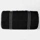 Duffle bag with text in the colors of the transgender pride flag. Pink, white, and blue flag of the trans pride movement, on a blue background