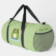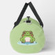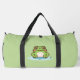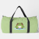 ¡Una bolsa verde de duffle con un ilustracion de una rana linda en su estanque y texto de personalizable en un costado! ¡Podría ser perfecto para un niño o un amigo que ama el animal y la naturaleza Kawaii!