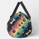 This colorful pattern duffle bag boasts a zany rainbow gradient background featuring various colored paw prints and playful bones with star accents. It's a cute design pet accessory and versatile travel gear, perfect for any pet lover.