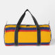 Three-color design with big hero stripe and smaller side stripes. Clean lines in three colors for your gym bag. Add your name on the front and a motivational quote or additional text on the side. This variant is the retro solid blue, yellow and red version.