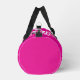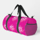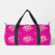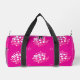 This duffle bag features a vivid magenta background decorated with soft white and blush‑pink circular dot clusters, creating a dynamic, contemporary geometric motif.
