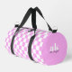 Haga una declaración audaz con nuestro bolso de personalizado duffle, que incluye una vibrante impresión de tablero de ajedrez retro personalizada con sus iniciales de monograma y nombre de script de firma. Diseñado a partir de materiales duraderos, esta bolsa ofrece un amplio espacio para todos sus elementos esenciales mientras muestra su estilo único. Elige entre los colores del personalizable para crear una apariencia única que se adapte a tu personalidad. Perfecto para sesiones de gimnasia, viajes o uso diario, esta bolsa de duffle personalizada combina funcionalidad con un diseño llamativo. Ya sea por usted mismo o como un regalo destacado, seguro que le dará la vuelta a la cabeza.