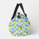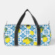 This duffle bag features a unique Mediterranean-style pattern of French country tiles and lemons. It is easily customizable with your name and monogram.