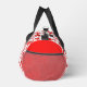 Este impresionante bolso de gimnasia para Navidades presenta una imagen de arte digital de un lindo caballo balancín de estilo escandinavo. El caballo es rojo con un mané rojo oscuro, cola y pezuñas. El caballo amistoso sonríe. Tiene una silla blanca y riendas con motivos folclóricos escandinavos bonitos en la silla, incluyendo el sol, la luna y las estrellas y los corazones y flores. La base del mecedor es roja y está cubierta de hojas blancas de bonito. El diseño se inspiró en el caballo Dala sueco.