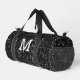 Un purpurina brillante blanco y negro enciende bolsas impresas de monograma. Bolso de accesorios de moda de Guay para ella. Hermosos purpurinas brillantes y glamorosos brillantes brillan el diseño. ¡Foto de destellos, no purpurina real! Crea una mochila única y personalizada con un toque personalizado. Monograma moderno con tu nombre inicial para ese toque personal extra.