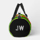 Bolsa de doble rayas de color rasta jamaiquino de color rojo, amarillo y verde, con texto monográfico personalizable en un extremo para que añada sus propias iniciales, nombre o mensaje