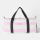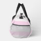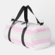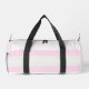 Three-color design with rhythmic stripes. Soft lines in three colors for your sports duffel bag. Add your name or a quote at the front and side. This variant is the pastel color scheme in grey, pink and white.