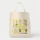 Un bolso de ultramarinos que ofrece un modelo temático del lemoande con los ilustraciones de una jarra de la limonada, de un tarro de albañil de limonada, de cuñas de limón, de un árbol de limón, de un bote del azúcar, de un juicer de la mano, de un tamiz, y de una cuchara de madera. Personalice con su nombre.