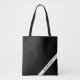 Personaliza esta bolsa de mano minimalista y discreta en blanco y negro con tu nombre en una fuente de letra cursiva y desenfadada en la esquina de una franja diagonal cerca del borde. Utiliza el editor de plantillas para cambiar el color de la bolsa o la fuente de tu texto personalizado. Añade texto personalizado para una bolsa de hombro especial, o añade el nombre de tu equipo deportivo o mascota en la esquina.