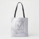 El diseño minimalista moderno presenta monograma y nombre personalizados en estilo de fuente sans serif gris sobre fondo de mármol blanco.