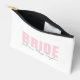 Mantenga los artículos de belleza de la novia organizados con esta elegante bolsa de maquillaje personalizada para novias, que presenta el texto "BRIDE" en rosa intenso y "future Mrs. [Su Nombre]" en elegante letra cursiva. Esta bolsa es perfecta para almacenar maquillaje, artículos de aseo personal o artículos esenciales para el día de la boda: ideal para regalos de despedida de soltera, bolsas de regalo para despedida de soltera o viajes de luna de miel.