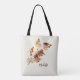 Inspiradora cita las escrituras personalizadas de la bolsa de tote representan un diseño abstracto de caída en cálidos colores de moda de otoño de azul, ciruela y beige, con un toque de oro brillante. Presenta la Biblia Verse 1 Corinthians 16:14, "Que todo lo que hagas se haga en amor". Personalizar la parte posterior con un nombre o los detalles de su elección._