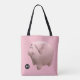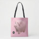 Cerdo lindo y adorable (3D computer art view 1) como banco de cerdos. Diseño en bolso de tote de impresión completa con fondo rosa pálido + monograma en círculo negro. Puede cambiar fácilmente el color de fondo, el monograma (fuente, color, tamaño y posición) y la posición + tamaño del diseño haciendo clic en el botón personalizar. Disponible con otras vistas al mismo cerdo. Perfecto para el año nuevo chino del cerdo o cumpleaños (personas nacidas en Año Cerdo).