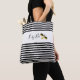 Bolso De Tela Abeja ocupada, Tote de hombro de franjas blancas y