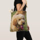 Esta tierna bolsa de tetas contiene una adorable foto de un perro goldendoodle. Fotografía creada por la galardonada fotógrafa Maria Jeffs.