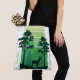 Imagen elegante en una bolsa de remolino de un ciervo en un cuadro verde del bosque. Llévelo con usted de vacaciones o en cualquier lugar para recordarle unas vacaciones futuras que le gustaría tomar.