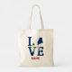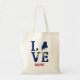 Amor principal. Principal en letra roja superior brillante sin sans. La palabra amor está llena con la bandera del estado y la letra O en el amor está modelada en la silueta del estado de Maine.