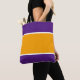 Este diseño deportivo, muy fresco, cuenta con una franja central ancha amarilla y brillante realzada con franjas blancas delgadas contra un fondo violeta real elegante y vibrante.