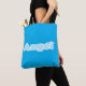 bolsa que es azul por un lado con la palabra "Ángel" el otro lado es rojo con la palabra "Demón"