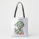 ¡Hermosas bolsas de tote de todo el mundo! ¡Disponible en dos estilos y dos tamaños! Diseño de vacaciones de Navidades de ilustracion de época con un animal mullido. Un lindo perro cachorro de juguete de gingham rojo y verde que los niños amarán. ¡Hola! Feliz Navidad!
