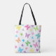 Patrón de mariposas coloridas sobre el fondo blanco de la bolsa de tocador
