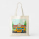 Bolso De Tela Autobús Escolar Amarillo con Conductor y Edificio