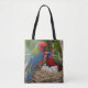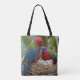 Trae el encanto de la naturaleza a tu vida diaria con esta hermosa bolsa de tetas con dos vibrantes pájaros rosella adornados en su nido, cuidando a sus adorables bebés.