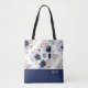 Esta bolsa está diseñada con un borde azul marino, un bouquet floral vintage en tonos de azul y un espacio para texto o un nombre. Personaliza con un nombre o texto de tu elección.