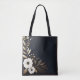 Bolso De Tela Azul oscuro con flores doradas y blancas