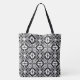 Tote impreso en un patrón de azulejos inspirado en Marruecos - patrón blanco con fondo negro