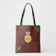 Navidades de bola de oro, conos de pino y pájaro cardenal sobre fondo negro, dorado y rojo a cuadros Tote Bag. Hay más en este diseño de lo que parece.