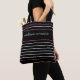 El diseño es de diseño, aunque clásico, con rayas blancas y rosas. Personalizar este bolso con tu nombre o dicho favorito.