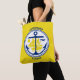 Bolsa de té con la ciudad de Anchorage, Alaska; bandera amarilla con sello blanco con ilustracion de un barco y ancla azul