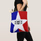 Bolsa de Tote con la bandera de San Antonio, Texas. Una bandera azul y roja con estrella blanca y un ilustracion de Álamo en el medio