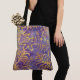Bolsa de tetas de poliéster de poliéster con todo sobre-impreso con una imagen de batik morado, dorado y azul con un patrón de follaje. Ver toda la colección Bali Retreat Tote Bag en los TOUCHES ESPECIALES| Sección Favoritos de la fiesta.
