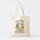 Bienvenido a sus invitados bodas con este tote de novios y novios. Añada todos los días favores de supervivencia como agua embotellada, tabletas para dolores de cabeza y juguetes y juegos de mesa para los niños que asisten al evento. Fácil de personalizar con los nombres de novias y novios y la fecha del boda. Ilustraciones T Rex con tipografía moderna. Obra original de la artista Catherine Sweetman