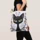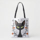 Black Cat Filigree / Quilling style design tote bag featuring a Black Cat with large green eyes surrounded by flourishes and flowers.