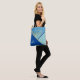 Un patrón geométrico contemporáneo, este bolso de hombro delantero de moda tiene un bloque de color anglonizado con una impresión azul colorida. Personaliza con monograma para un tote personalizado que te hace un regalo maravilloso o un buen regalo.