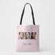Blush Pink Makeup Artist or Hair, Makeup & Beauty Studio Branding Script Chic design with soft pink background tote bag and three photos elegant handwritten script. Perfect for beauty professionals, this chic blush pink layout creates a polished, feminine brand look that is easy to personalize and elevates your client-facing presence. Complementary products are available in this collection.